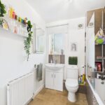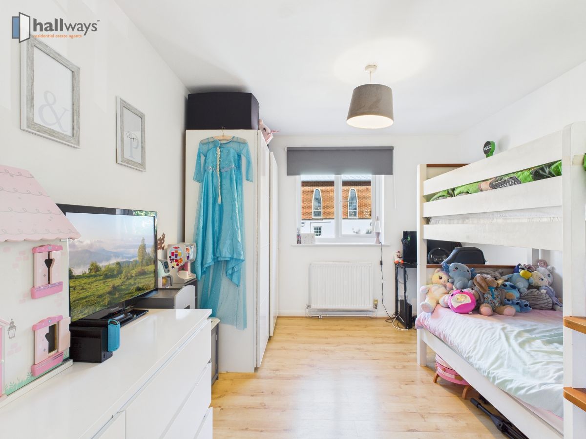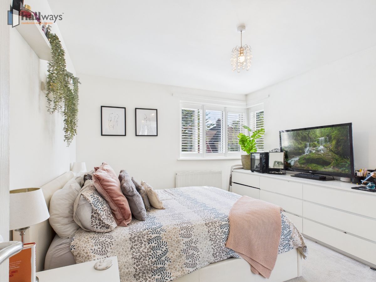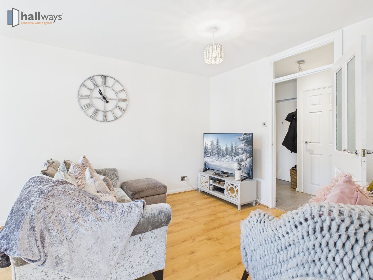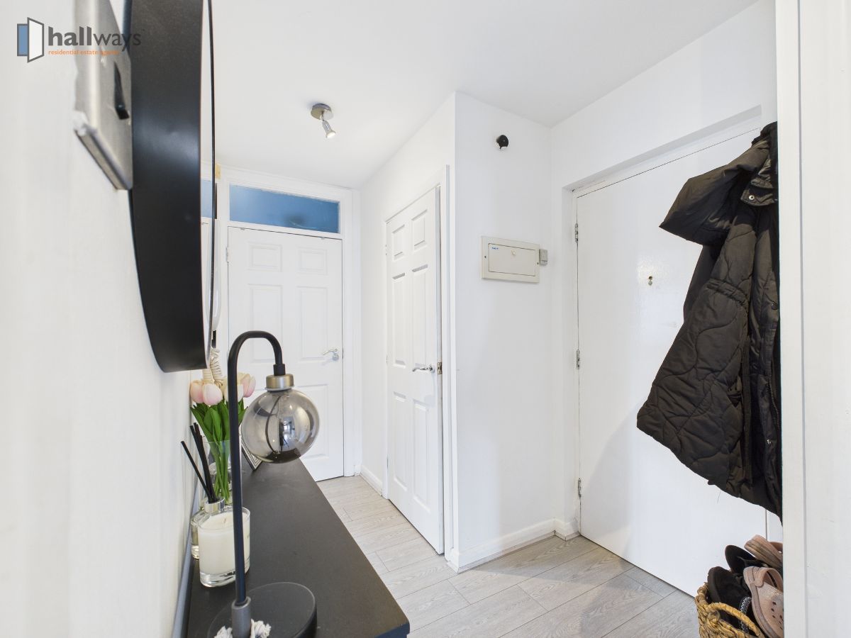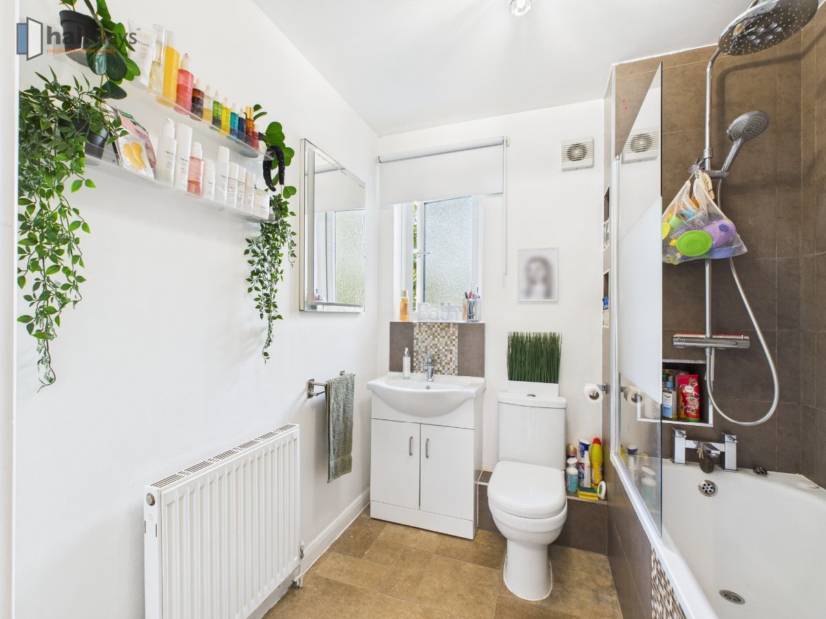 There are two double bedrooms, both neutrally decorated and well-proportioned, with the larger bedroom offering excellent space for wardrobes and storage. A fresh, fully tiled bathroom with a bath and overhead shower completes the home.
