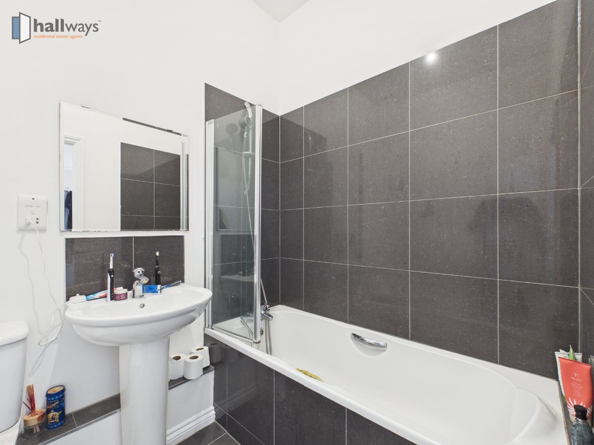 The property comprises two well-proportioned bedrooms, including a generous principal bedroom, often with built-in storage and the potential for an en-suite. A modern family bathroom completes the internal accommodation.