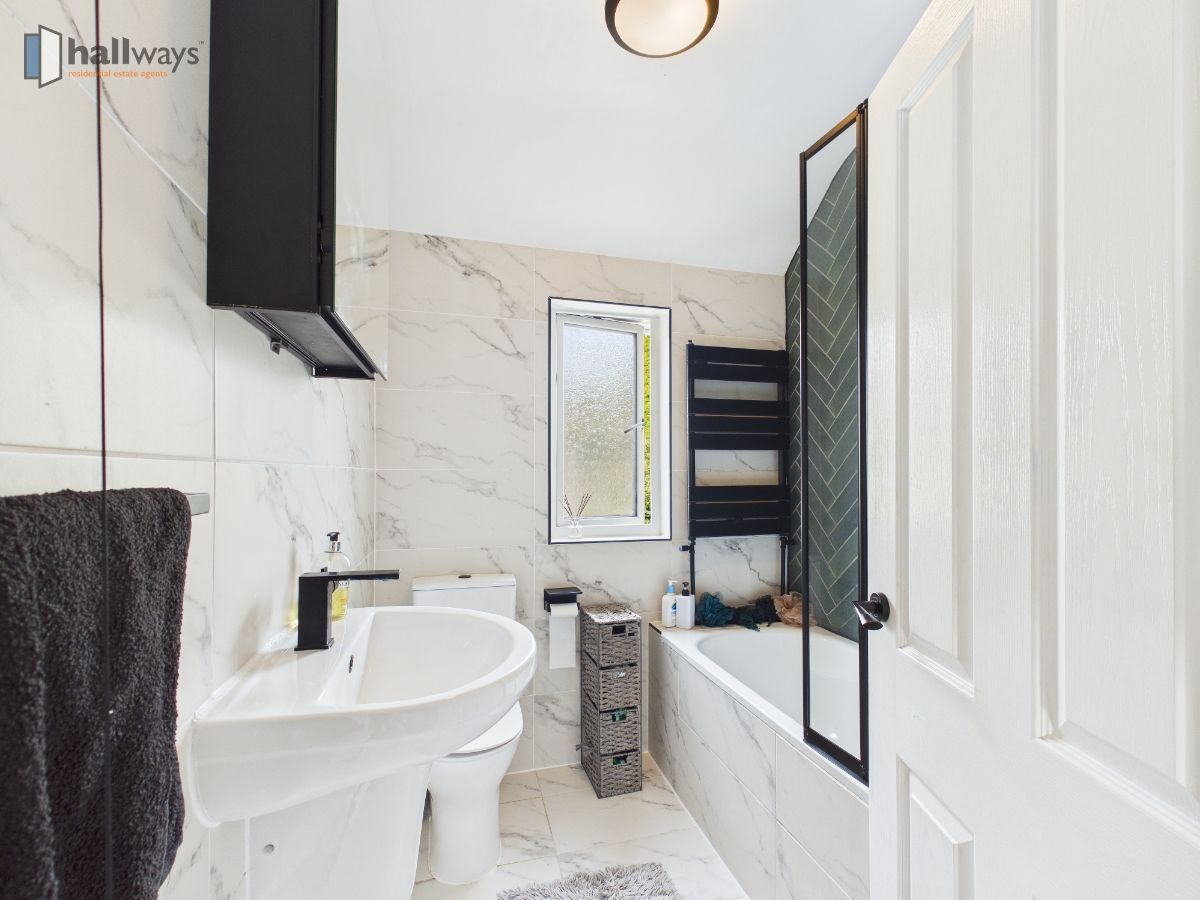Upstairs, the property features three bedrooms, including two comfortable doubles and a versatile third bedroom, ideal as a nursery, guest room, or home office. A family bathroom is accessed from the landing.