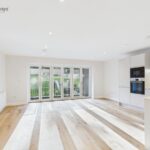 Open plan lounge, with solid wood flooring and a stunning kitchen area, including quartz worktops and fully fitted Bosch appliances. A fantastic place to entertain.