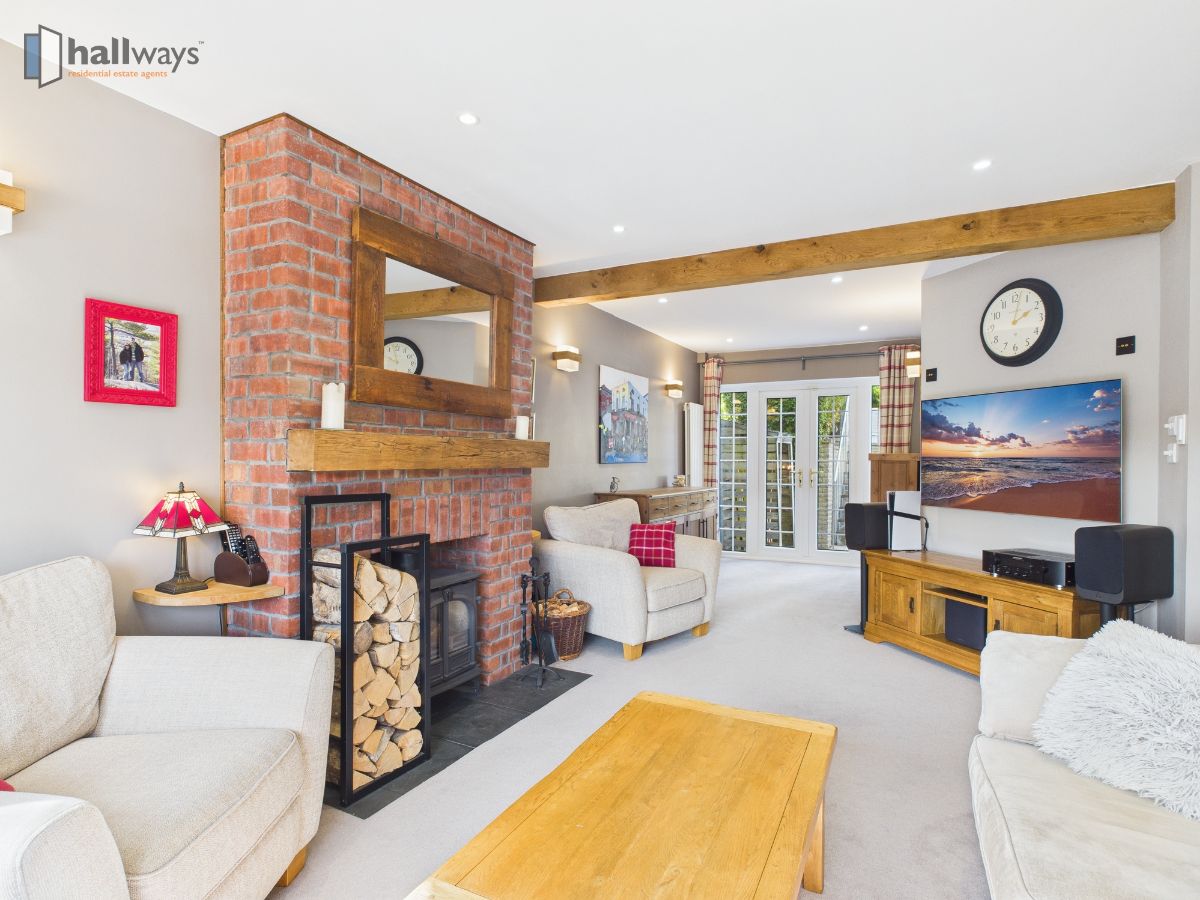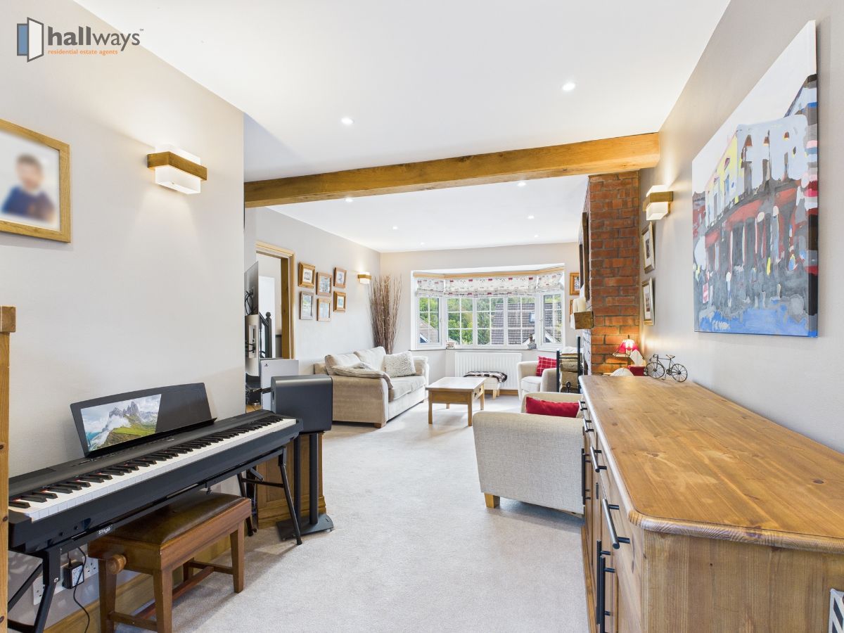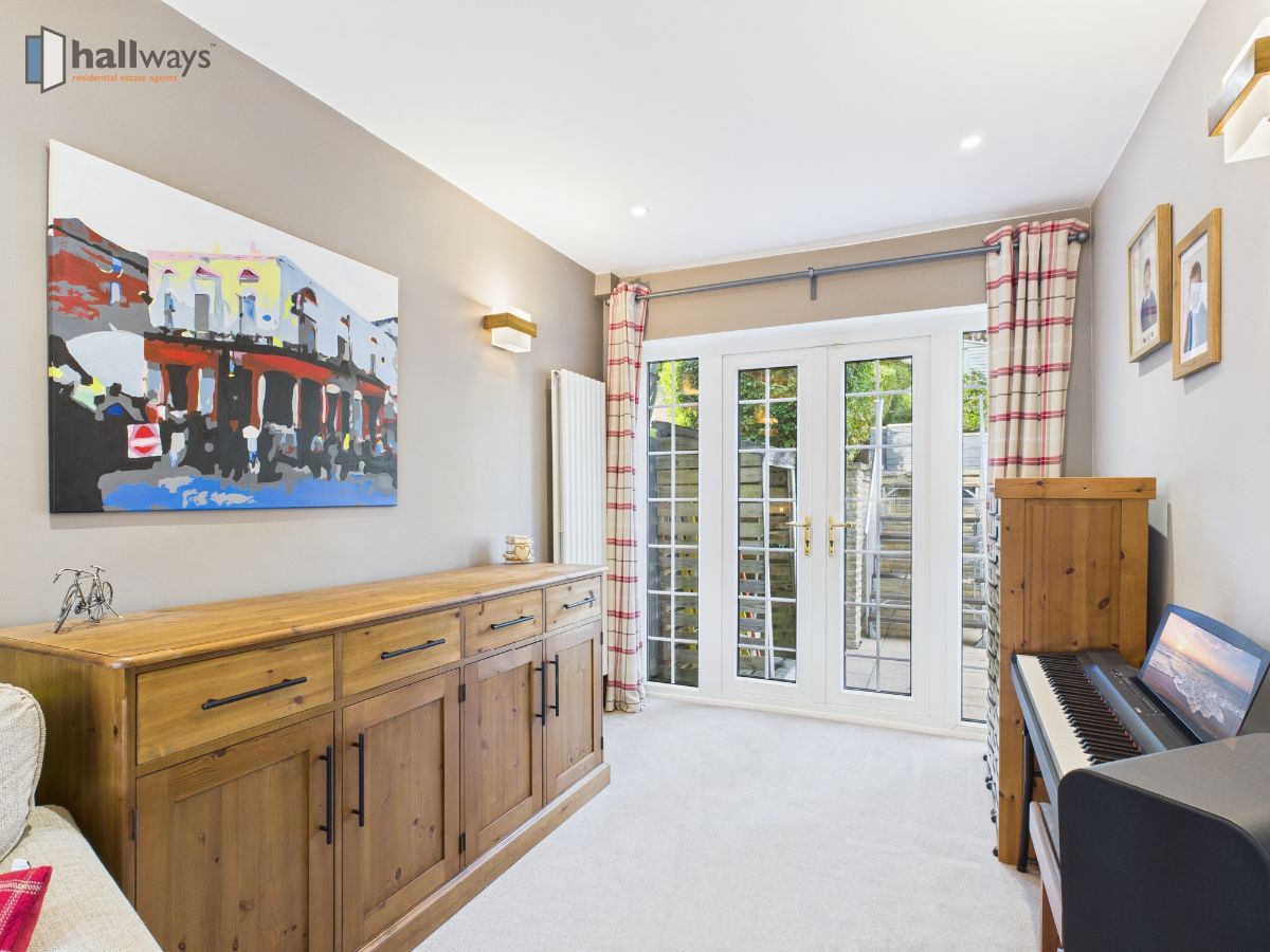 On the ground floor, a welcoming hallway leads into a spacious and light-filled living room with a charming bay window, creating a warm and inviting atmosphere for both everyday living and entertaining.