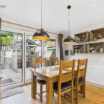 Bathed in natural light from large windows and doors opening onto the garden, this is the perfect setting for family meals, gatherings with friends, or simply enjoying the sunshine throughout the day.