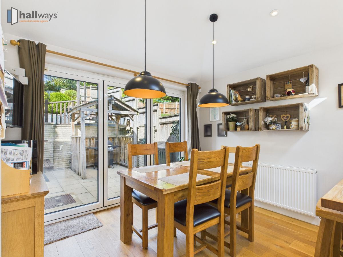 To the rear of the property sits the true heart of the home - a stunning open-plan kitchen and dining space, finished in crisp white with stylish wood accents.