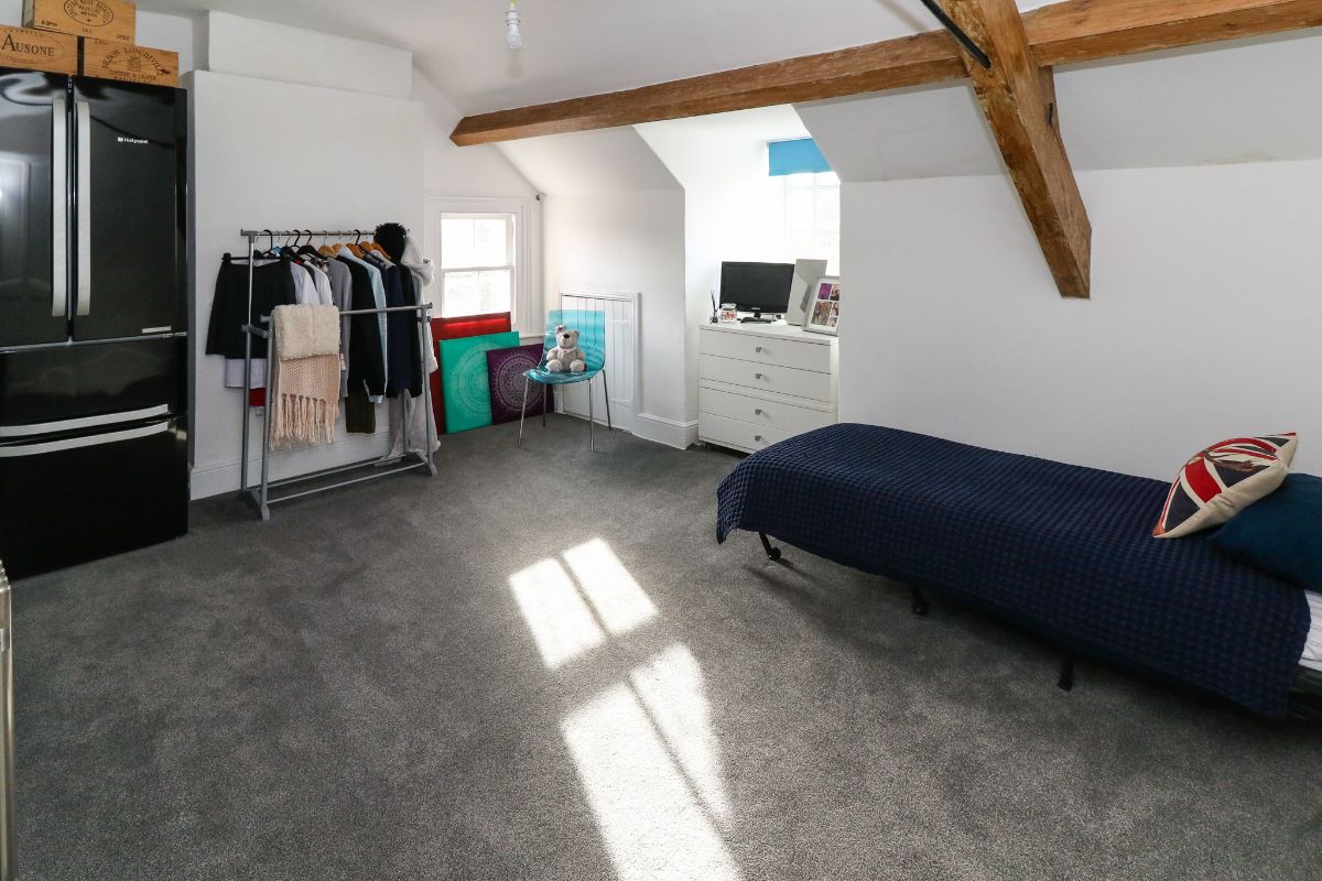 This 2 bedroom, 2nd-floor period conversion flat has a spacious lounge with beamed ceilings, two large bedrooms and a modern fitted kitchen and bathroom. Lots of storage space and the important extras of a private rear garden with decked area and allocated parking for 2 cars.