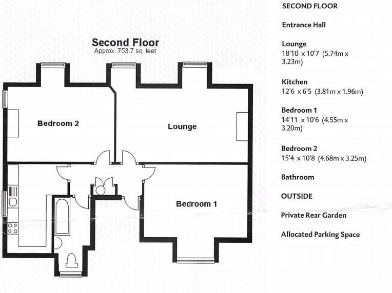 Private rear garden and two parking spaces.